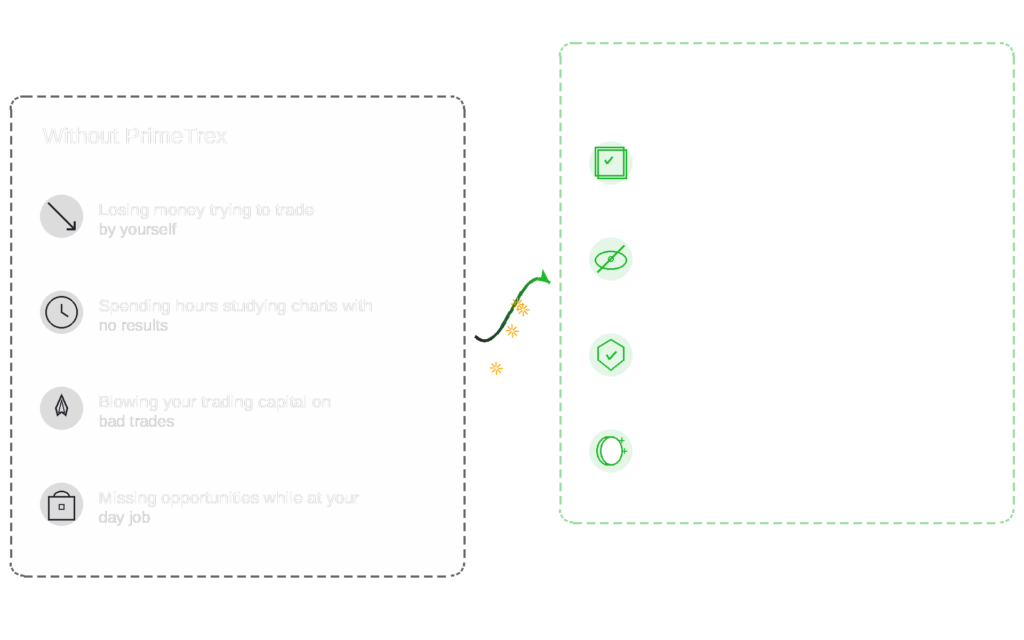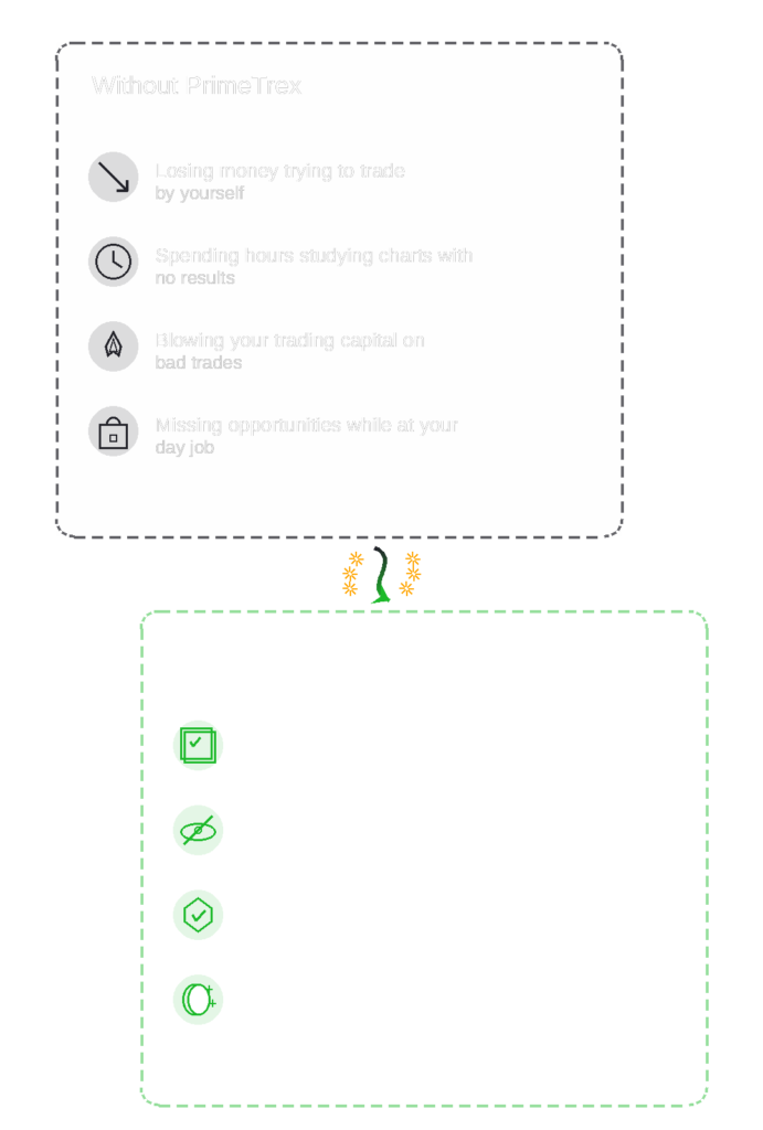 At PrimeTrex, we do 80% of the work you need to succeed in trading, so you save time, limit risk, and maintain your work-life balance as you make profits.